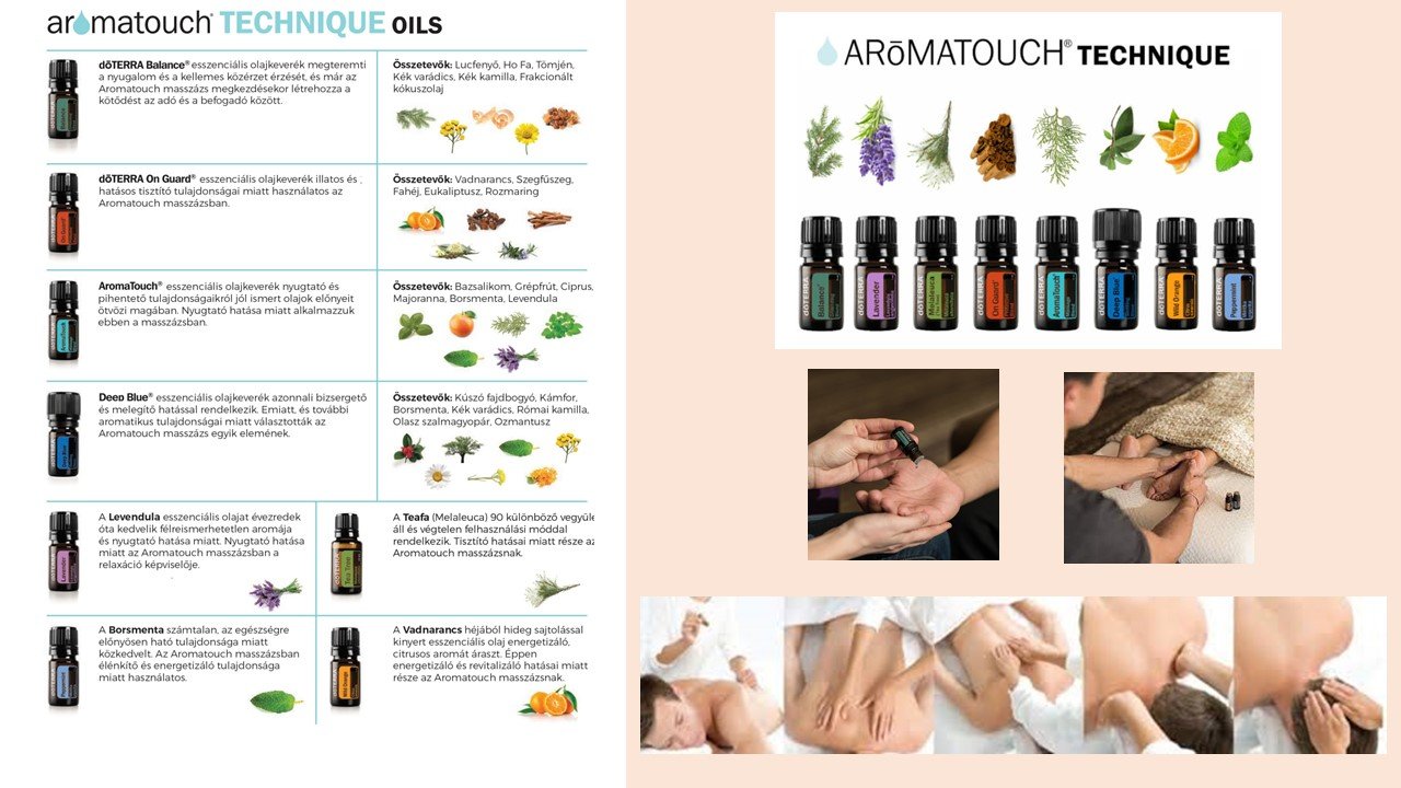 Az Aromatouch®Technika nem egy masszázs, hanem egy speciális illóolaj felviteli technika, amely 8 különböző dōTERRA illóolajjal és illóolaj keverékkel történik.